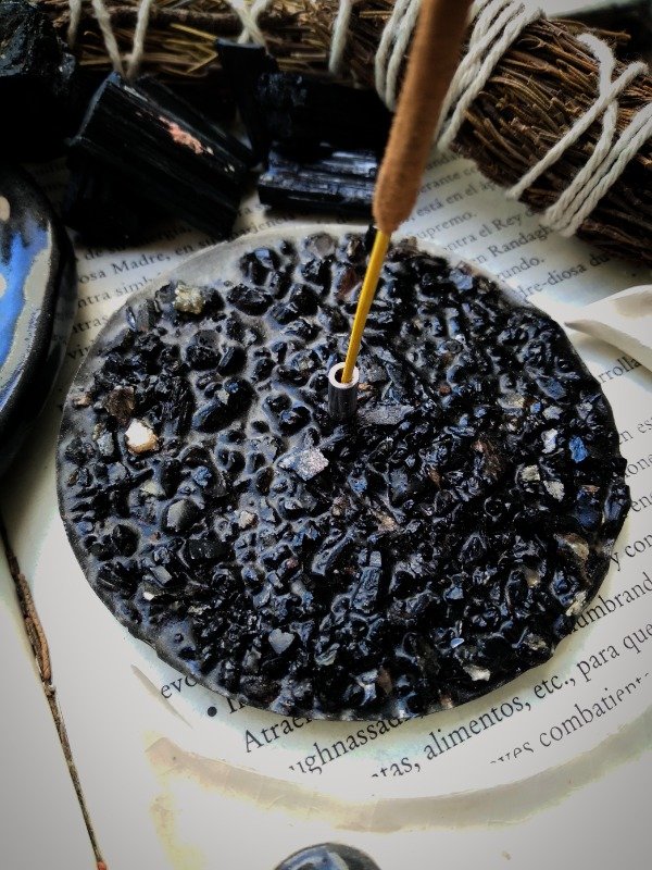 La turmalina negra es conocida por su capacidad de absorber y desviar energías densas, creando un entorno más seguro y equilibrado. Al estar presente en un porta sahumerio, potencia todo ritual de purificación.